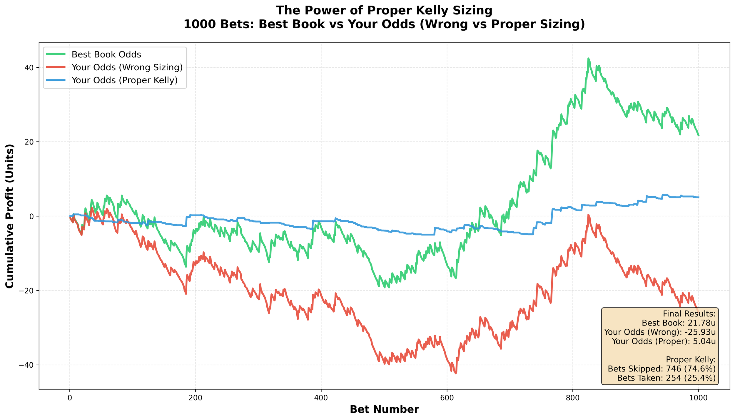 That's a 30.97 unit improvement - just from sizing your bets correctly!